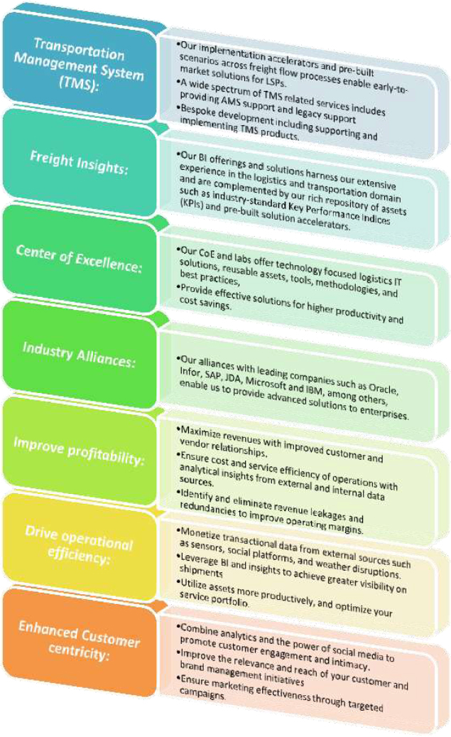 The entry of digital technologies into the Logistics and Distribution industry has led to the enhanced visibility of logistics operations, which has permeated across the entire supply chain. for economic growth and trade, transport sector is witnessing growth after recession but still is highly affected by global energy prices also, with companies from developed world entering into emerging markets, there is focus towards localization and outsourcing of major transport and logistics facilities by many industries. Companies in this multifaceted sector operate on a highly competitive market sensitive to the economic environment where growing competition and globalized operations make it necessary for logistics service providers (LSPs) to effectively collaborate with partners across the value chain, monitor processes end-to-end and adopt preventive strategies over the more traditional reactive approach to sustain profitability.